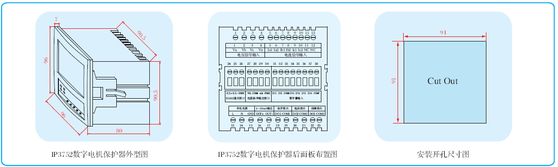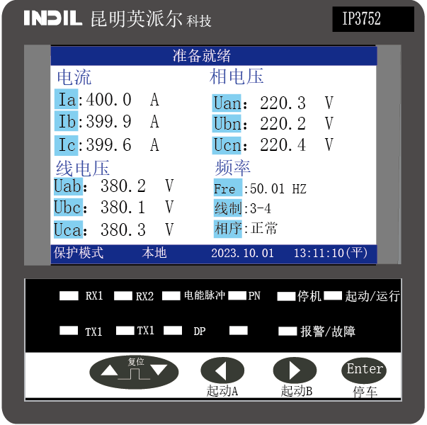IP3752數(shù)字電機保護器(以下簡稱保護器)主要用于保護交流電壓380V,頻率50Hz,電流1000A以下的各種交流電機。具有過載、堵轉(zhuǎn)、輕載、不平衡/缺相、過壓/欠壓、短路、接地等故障保護功能,并有最大允許分斷電流保護以及全參數(shù)測量(包括三相電壓/電流、接地電流、有功/無功功率、功率因數(shù)、頻率、有功和無功正/負電能和不平衡率等參數(shù))、操作控制、遠程通訊等功能。其采用互感器與主體分離的電流輸入方式,需配合專用或通用CT模塊一起使用。