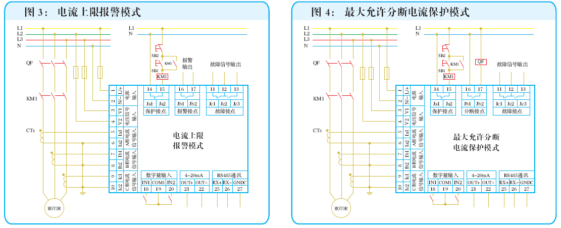 當(dāng)電機(jī)電流超過電流上限報(bào)警設(shè)定值時(shí),保護(hù)器將進(jìn)行報(bào)警倒計(jì)時(shí),倒計(jì)時(shí)結(jié)束后保護(hù)器進(jìn)行電流上限報(bào)警輸出。
