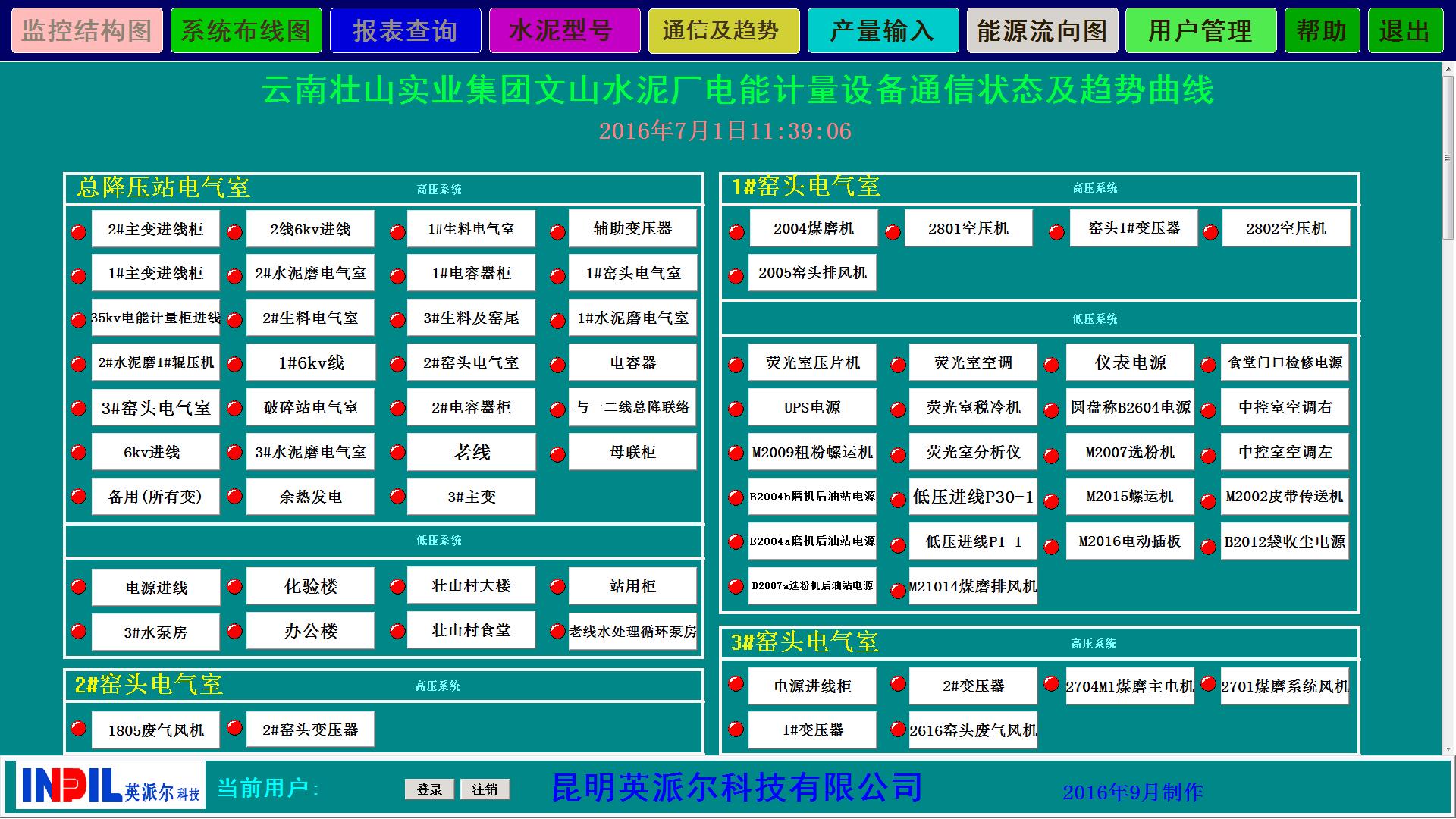 7、電能計量以各個電氣室為主體,基本分為:總降壓站電氣室、1#原料電氣室、1#生料電氣室、1#窯頭電氣室、1#制成電氣室;2#制成電氣室、2#窯頭電氣室、2#生料電氣室; 3#原料電氣室、3#生料及窯尾電氣室、3#窯頭電氣室、3#制成電氣室、石灰窯電氣室、加氣磚電氣室、烘干電氣室;余熱發(fā)電電氣室;